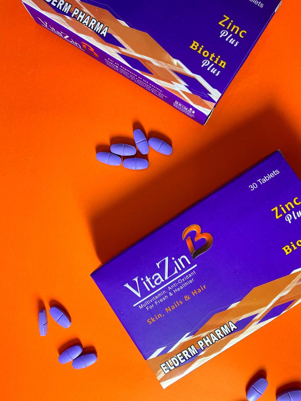 Our bestselling VitaZinB tablets packed with essential nutrients Vitamins, Biotin, and Zinc are a daily boost for your hair, nails, and skin!